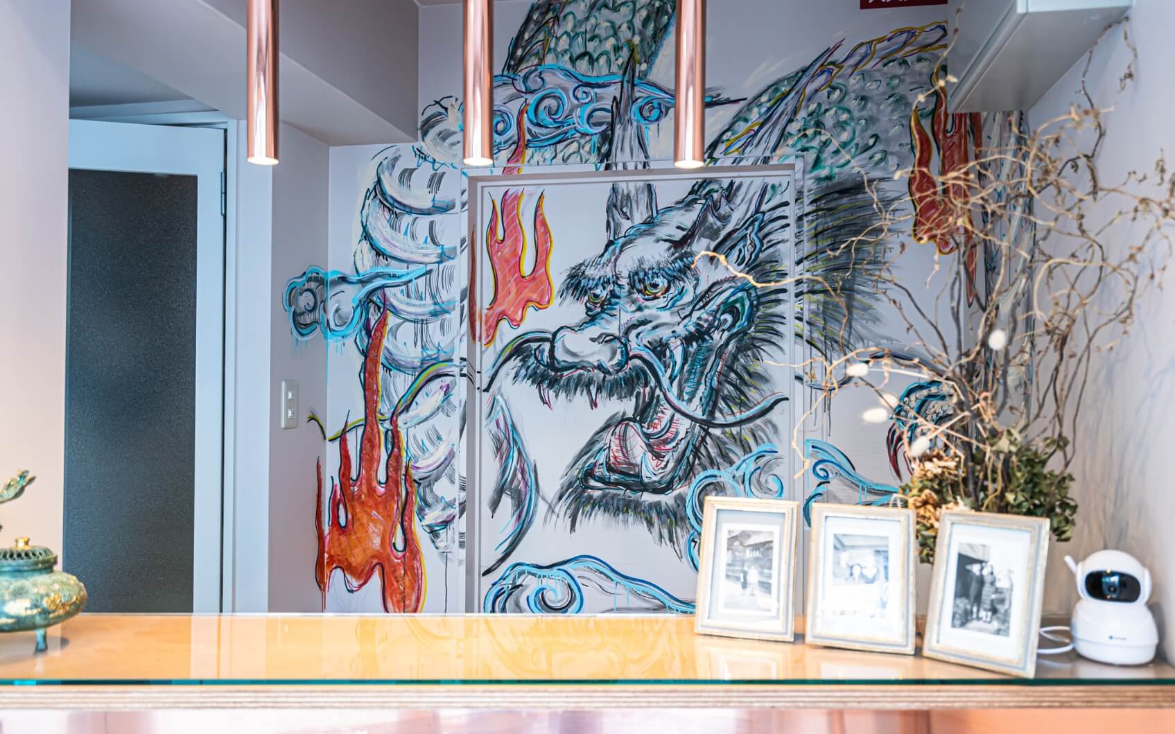 施設内に描かれた三匹の龍、Dragon, Dragon, Dragonがd3の名前の由来。