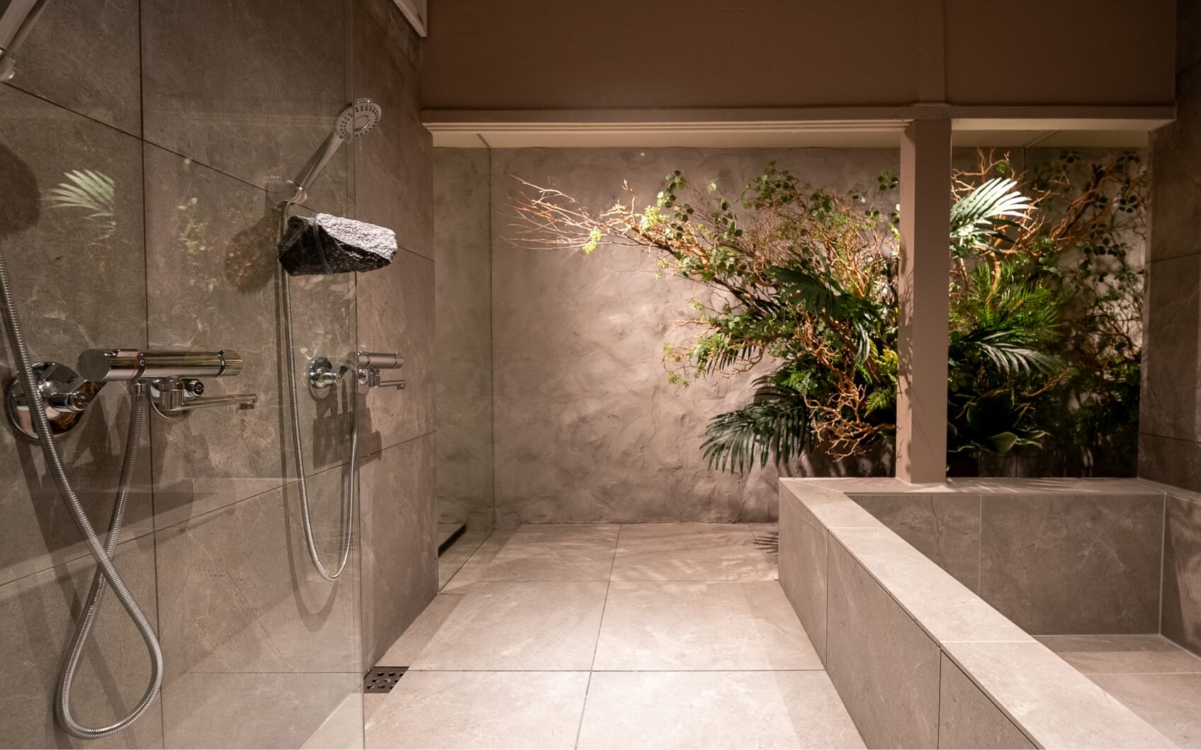 旅行やゲームで疲れた心と体を癒すアートのある浴室。